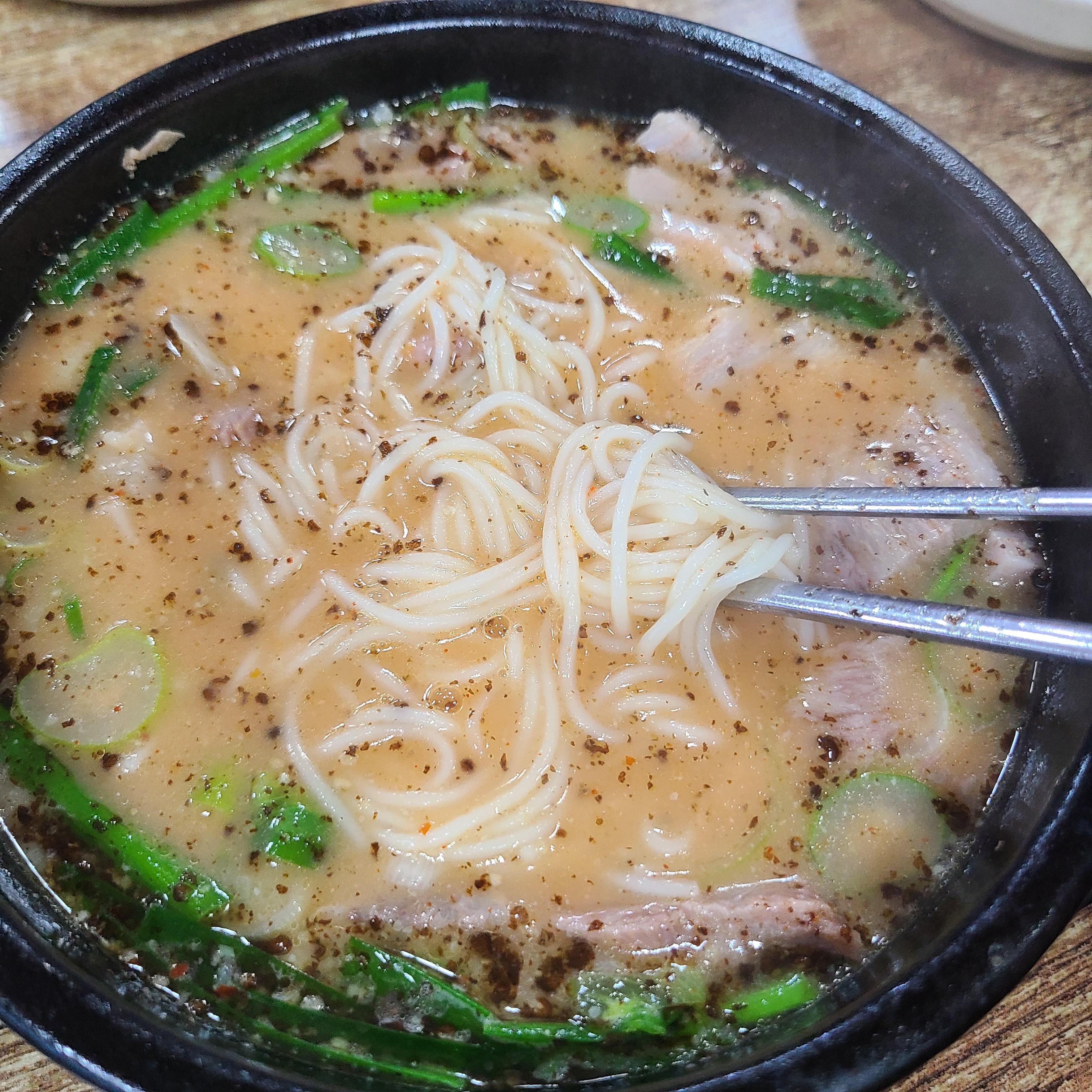 파주월롱 부산돼지국밥은 소면이 기본이다.