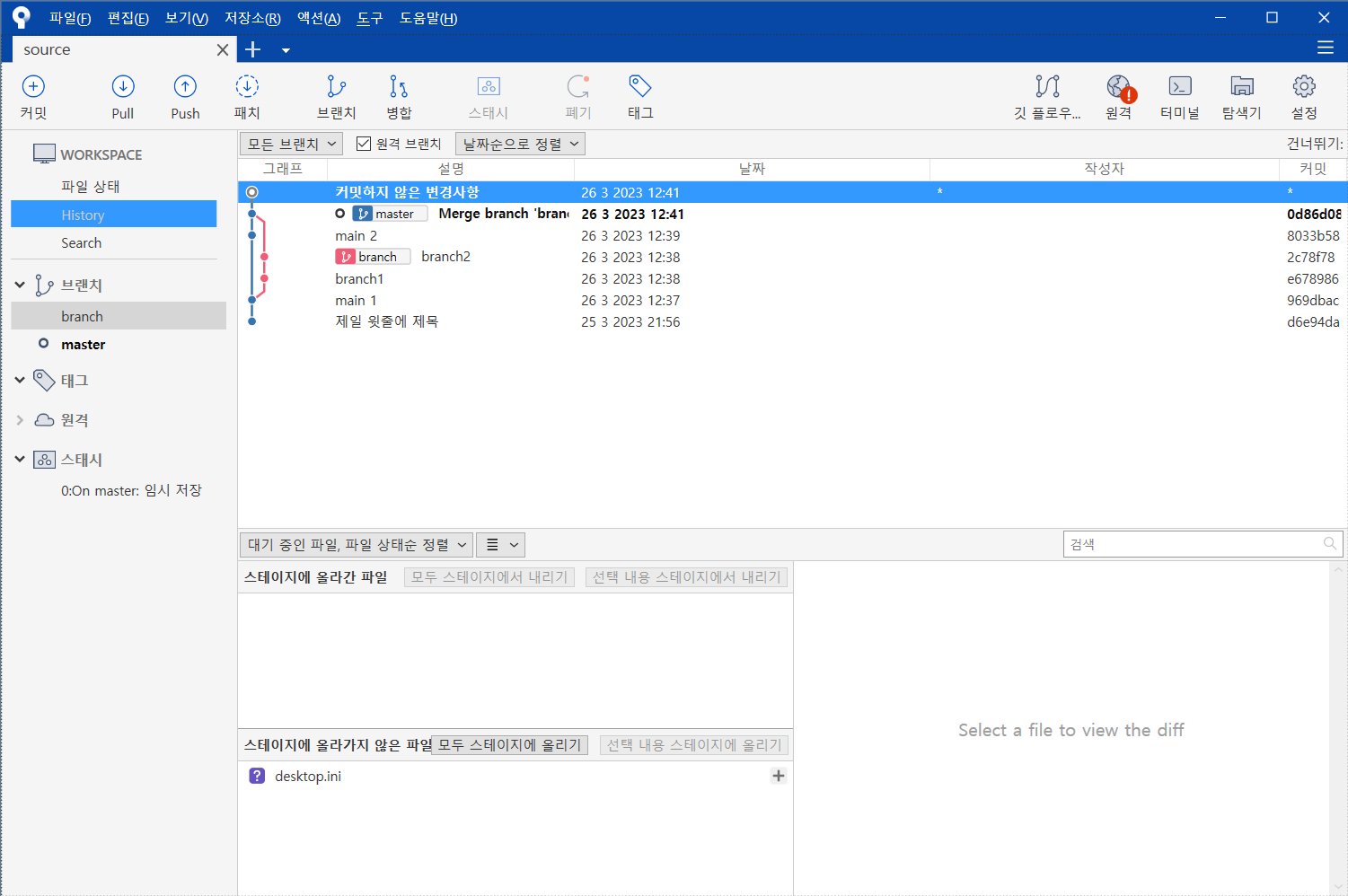 마찬가지로 분기 => 마스터에서 병합합니다.