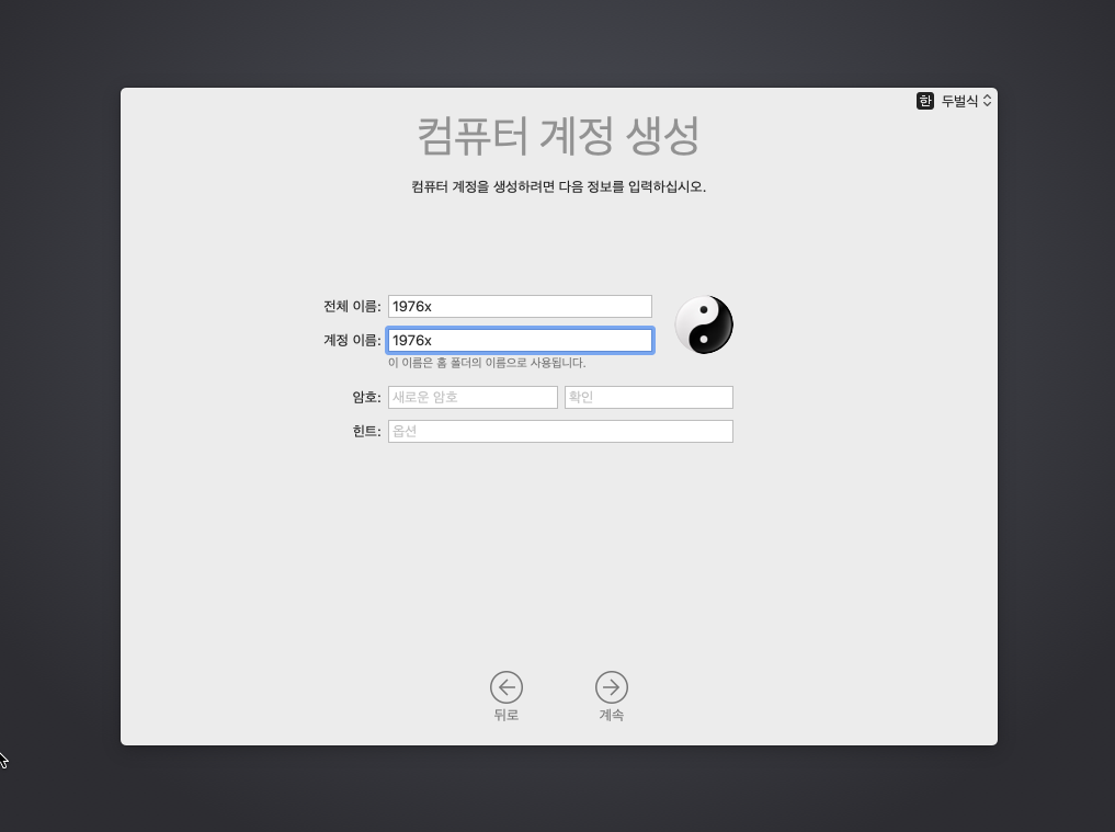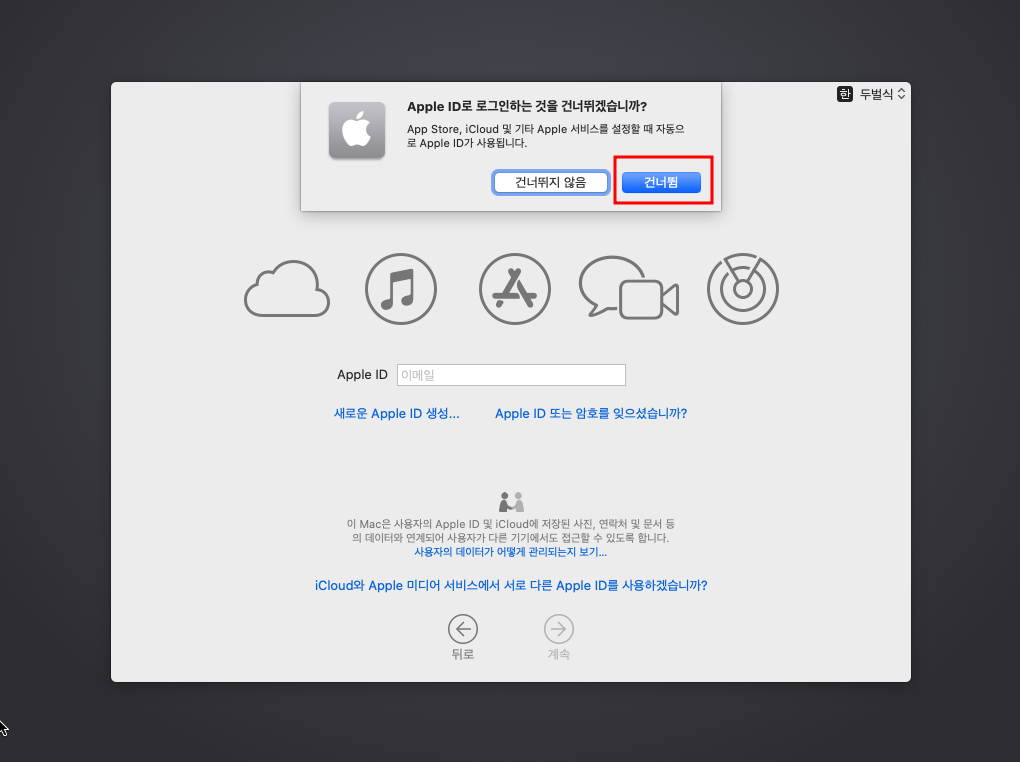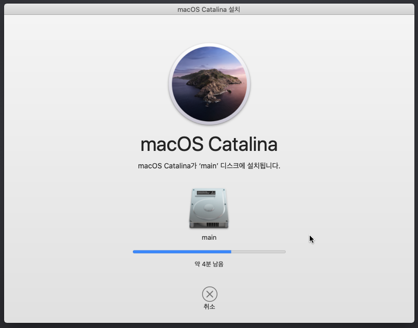 애플로고가 뜨고 설치가 진행됩니다. (이제 기도하자 AMD CPU가 설치되지 않았을 수 있습니다.)