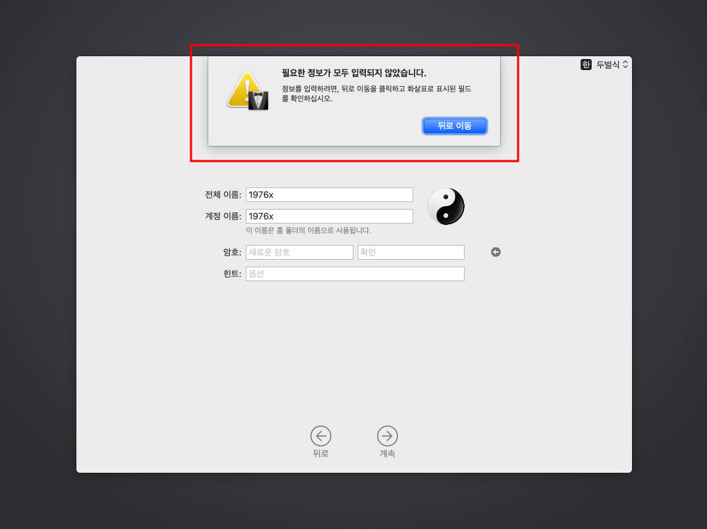 계속 진행하려면 비밀번호를 입력해야 합니다.