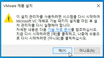 다운로드 후 실행하시면 위와 같은 화면이 나옵니다. ‘예‘를 눌러 재부팅 후 설치 파일을 실행하면 됩니다.