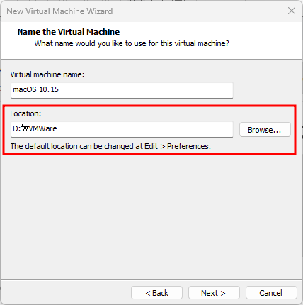 (이전에는 D:\VMware 폴더를 설정했습니다.)