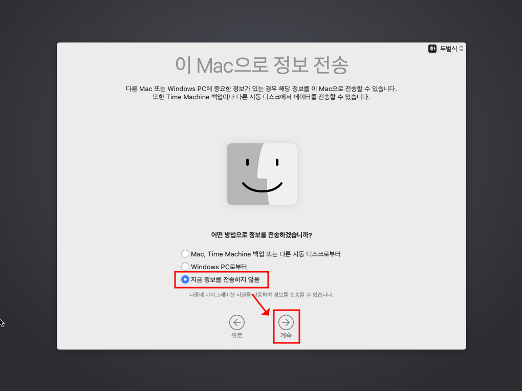 ‘나중에 운영 체제를 설치하겠습니다.‘ (나중에 운영 체제를 설치하겠습니다).